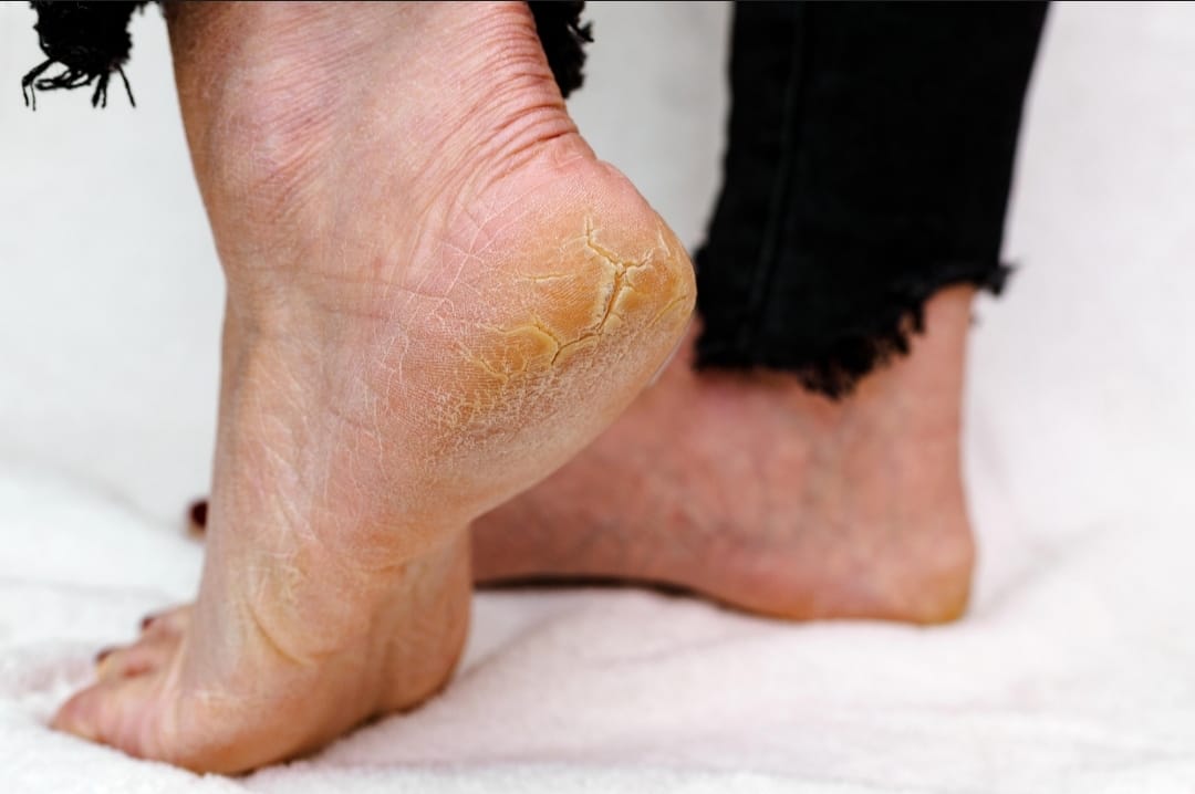 1. خشکی شدید پوست – مخصوصاً در ناحیه پاشنه